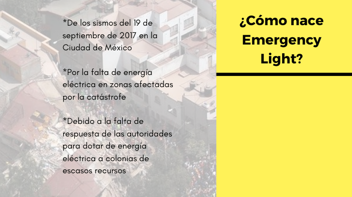 Emergency Light es un proyecto que tiene como objetivo crear nuevas soluciones sustentables para suministrar luz a cualquier usuario que no cuente con acceso a la electricidad, mediante un sistema que utiliza energía iónica.